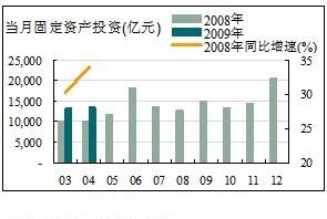 4月份城鎮(zhèn)固定資產(chǎn)投資仍然延續(xù)上個月上漲趨勢,當月固定資產(chǎn)投資達到13,520.31億元,同比增長33.96%,較上月再次提高3.65個百分點。