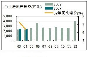 2009年房地產(chǎn)市場盡管仍舊低迷,但表現(xiàn)要好于預(yù)期,較上年出現(xiàn)小幅的同比上漲。4月份當月實現(xiàn)房地產(chǎn)投資2,409.69億元,同比增長6.42%,累計投資達7,289.98億元,同比增長4.9%。
