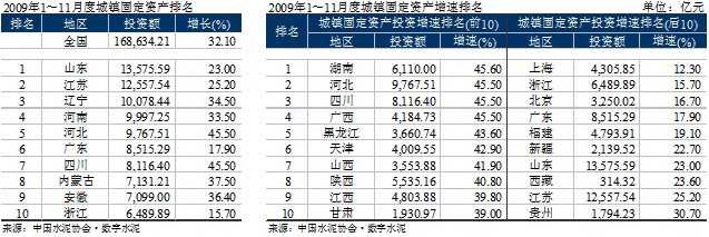 投資前10的。▍^(qū)、市)主要來自中南、西南地區(qū),政府西部開發(fā)的傾向與經(jīng)濟發(fā)展的偏移,也是西部水泥高投資的原因。其中四川地區(qū)受災(zāi)后重建拉動,水泥投資額與水泥投資增速均高居全國第一,投資額為211.03億元,同比增長165.6%。