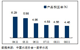 在水泥產(chǎn)量大幅增長的背景下,1~11月的全國水泥產(chǎn)品積壓率仍延續(xù)了近幾年連續(xù)下降的趨勢,為6.07%。產(chǎn)品積壓率下降的原因,主要原因是,市場需求好于預(yù)期,西北、西南局部地區(qū)還出現(xiàn)供不應(yīng)求;而華東地區(qū)為四季度旺季提價做準備,持續(xù)減少產(chǎn)品庫存。