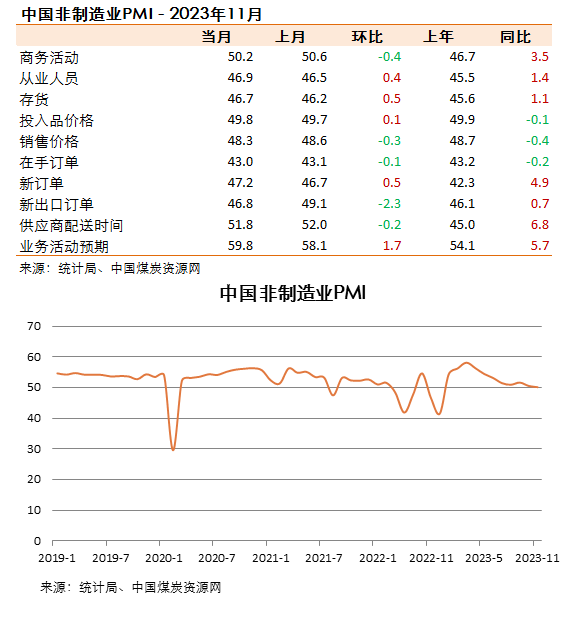 11月份,非制造業(yè)商務活動指數為50.2%,比上月下降0.4個百分點,仍高于臨界點,非制造業(yè)擴張步伐有所放緩。