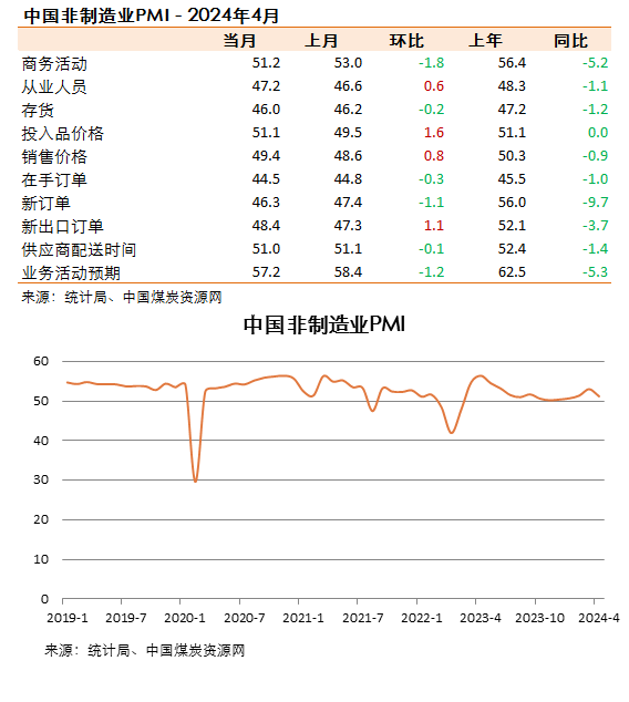 4月份,非制造業(yè)商務(wù)活動(dòng)指數(shù)為51.2%,比上月下降1.8個(gè)百分點(diǎn),仍高于臨界點(diǎn),非制造業(yè)延續(xù)擴(kuò)張態(tài)勢(shì)。