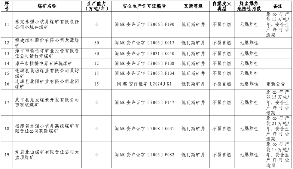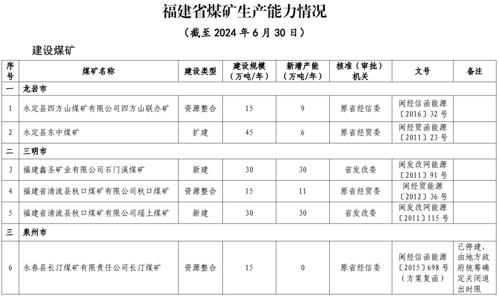 福建省發(fā)展和改革委員會關(guān)于公布截至2024年6月底全省建設(shè)生產(chǎn)煤礦產(chǎn)能和瓦斯等級的通知