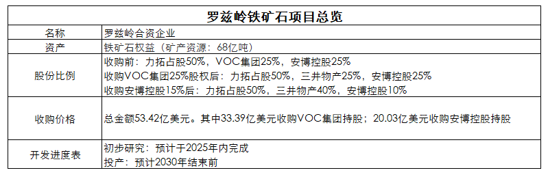 作為交易的一部分,三井物產(chǎn)將以33.4億美元的價格收購VOC集團在羅茲嶺的全部25%的權(quán)益,并與安博控股有限公司(AMB Holdings)簽署了意向協(xié)議,以20億美元的價格收購15%的股權(quán)。安博控股將保留該項目10%的權(quán)益。這些交易仍需獲得監(jiān)管部門的批準(zhǔn)和成交條件。